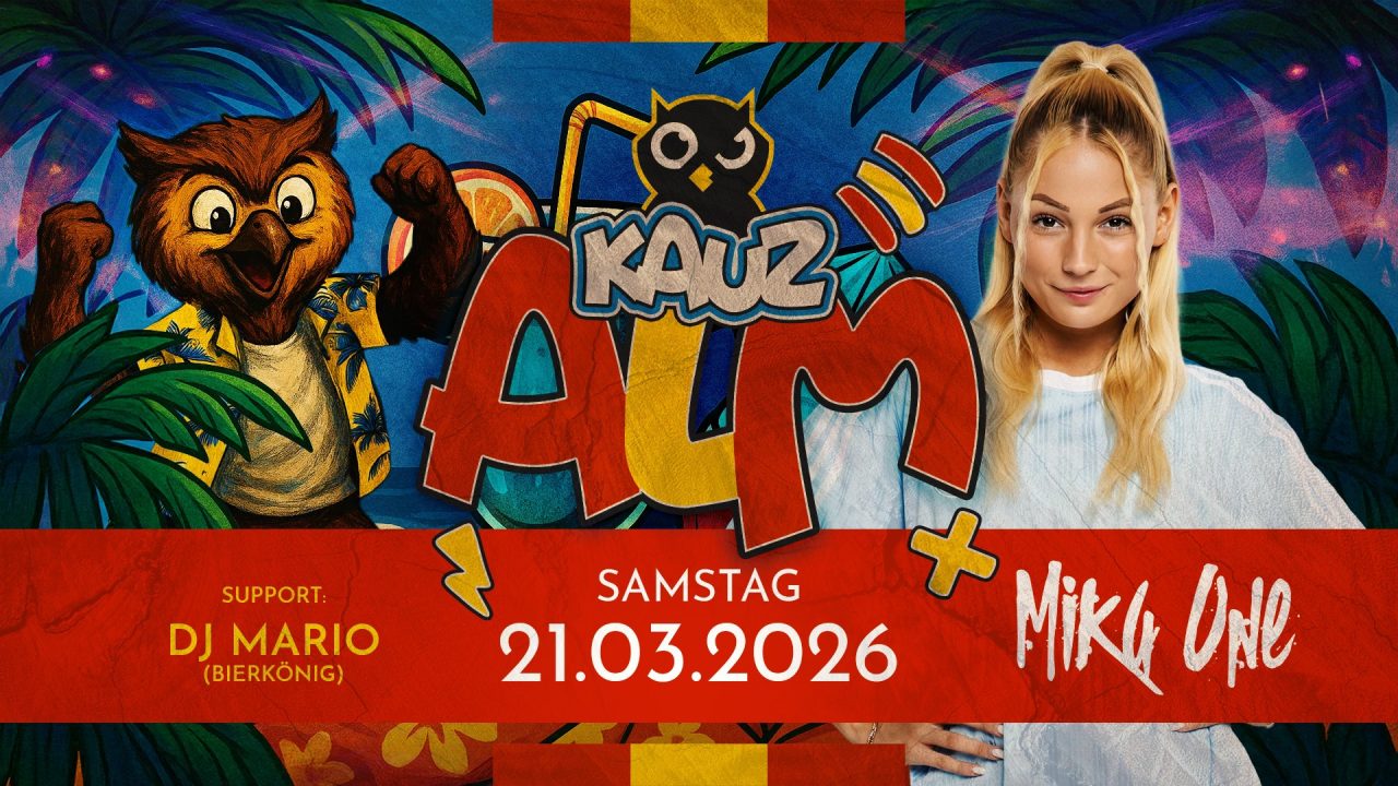 Erlebt jeden Samstag die legendäre KAUZ ALM – eine Party mit der unvergesslichen Mischung aus Party Hits, Mallorca und Après-Ski! Die Tore öffnen ab 22 Uhr 🔓 – dann gibt es kein Halten mehr!